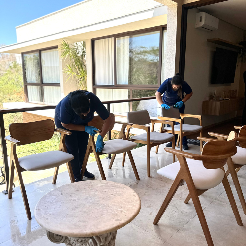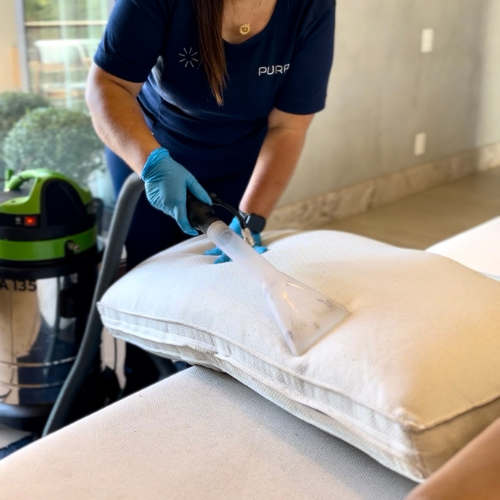 Na Pura em Casa somos especialistas em limpeza e impermeabilização de estofados. Utilizamos técnicas modernas que eliminam sujeiras, ácaros e manchas, devolvendo a beleza e o conforto do seu sofá.